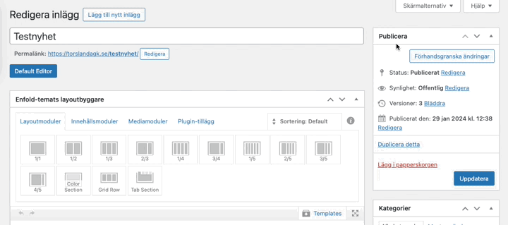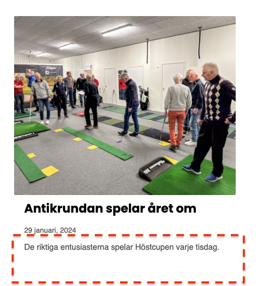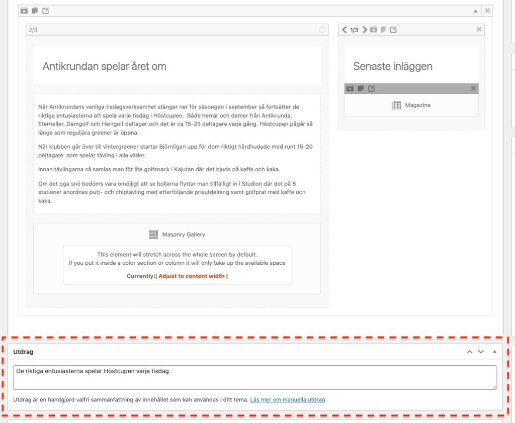 Fältet för Utdrag finner ni inne i redigeringsläget för inlägget/sidan: